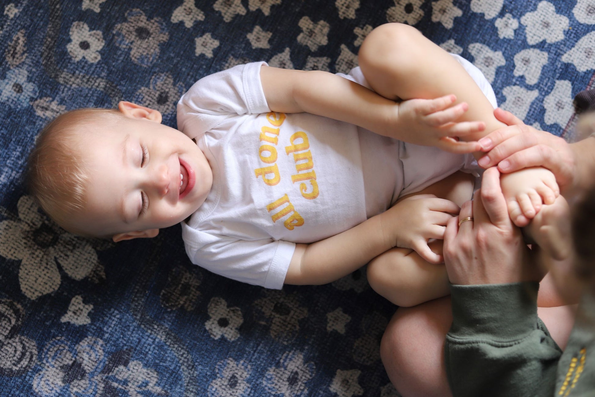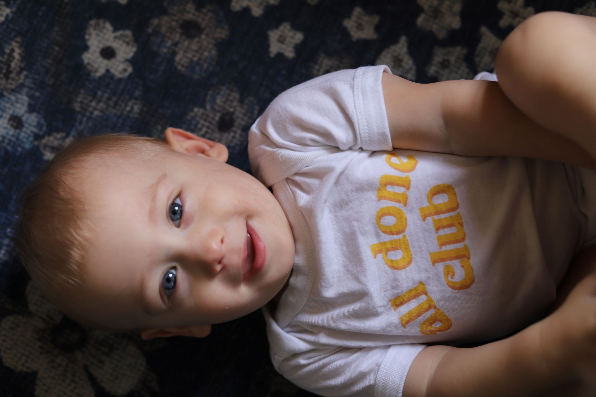 This 100% cotton onesie has a three snap leg closure for easy changing and a comfortable envelope neckline, you can fold down to slip baby out with ease once they make an inevitable mess of it.