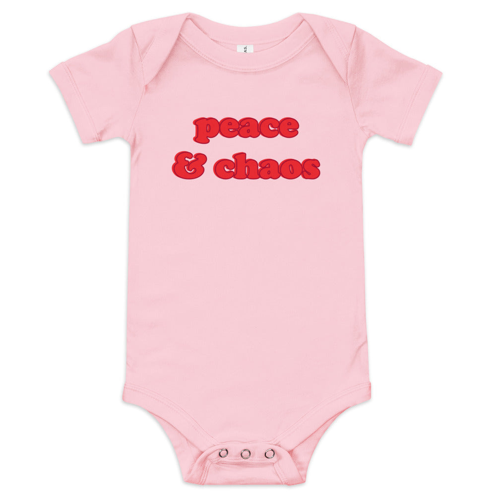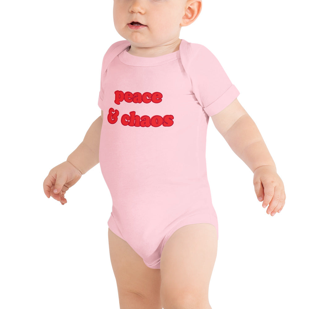 This 100% cotton onesie has a three snap leg closure for easy changing and a comfortable envelope neckline, you can fold down to slip baby out with ease once they make an inevitable mess of it.