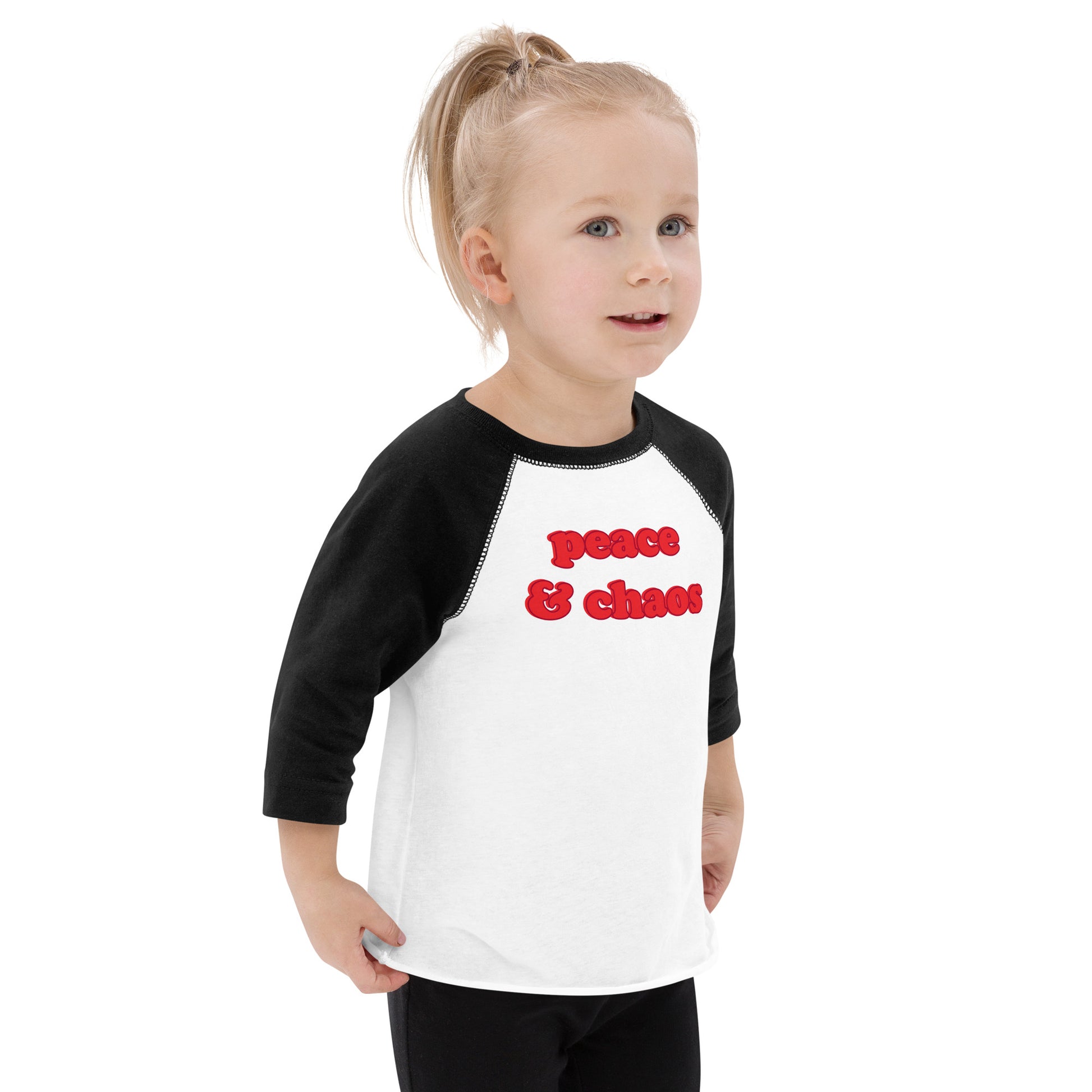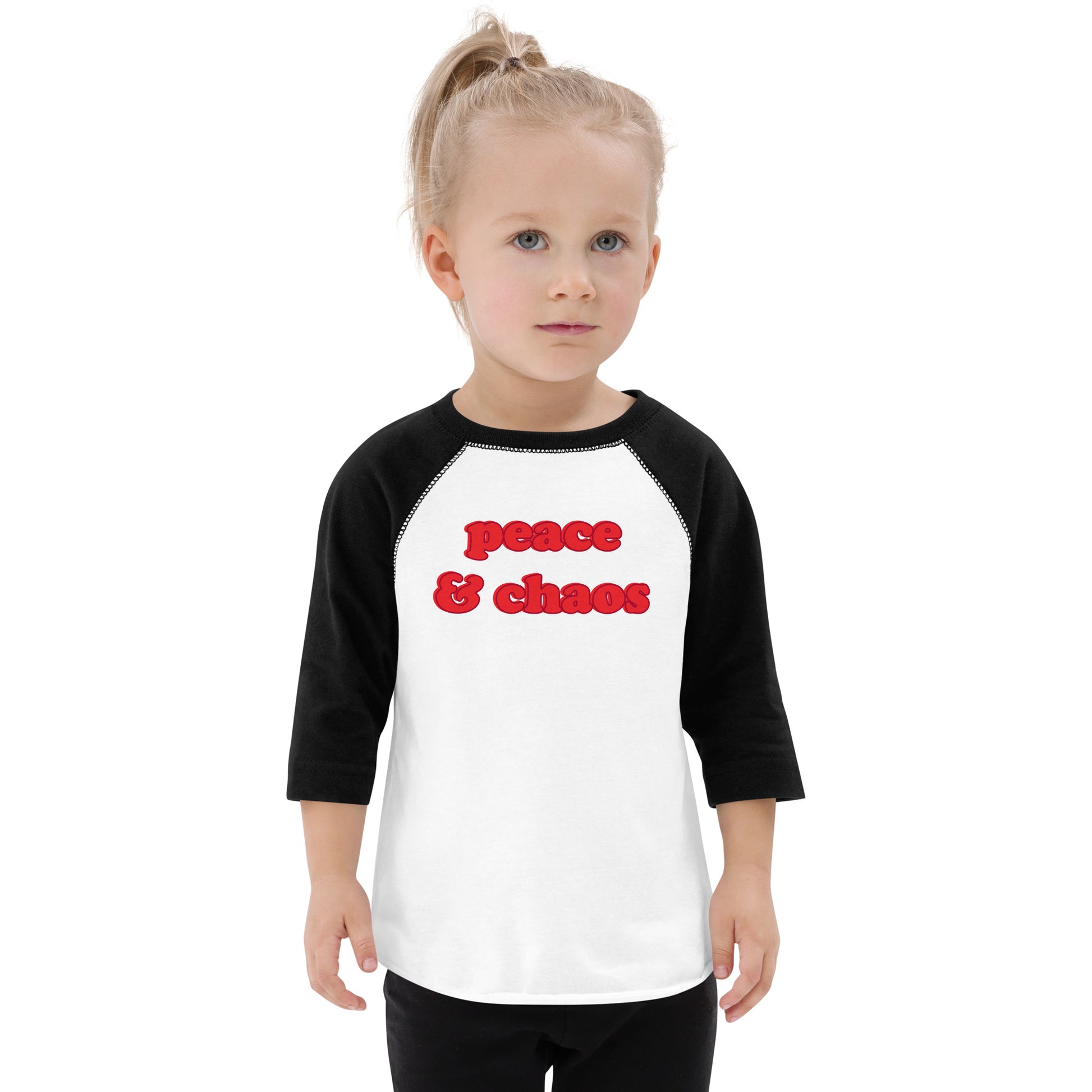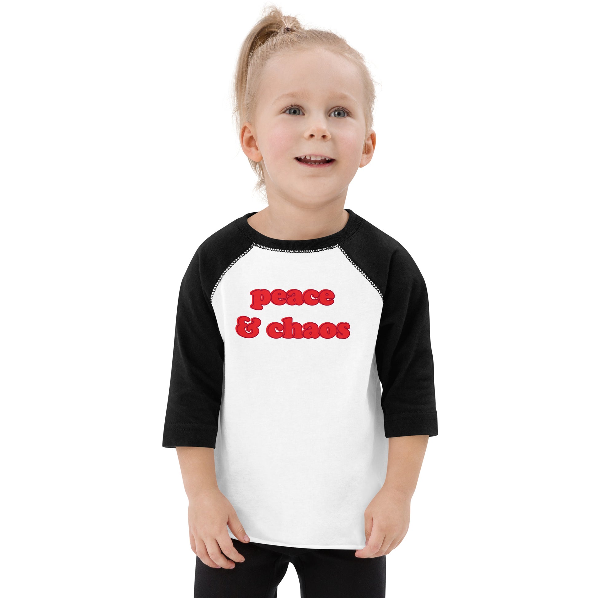 This soft and comfy printed baseball shirt features raglan sleeves and shirttail hem.